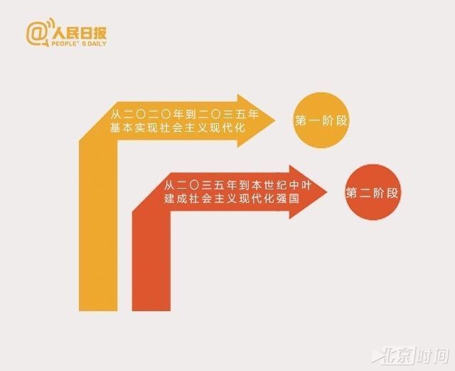 分两步走在本世纪中叶建成富强民主文明和谐美丽的社会主义现代化强国。