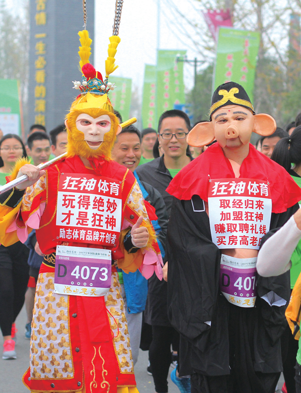 “孙悟空”“人猿泰山”,跑的是快乐;同个单位,携手向前,跑的是友情;父子并肩,大手牵小手,跑的是亲情。而来自各地的跑团成群结队,跑的是健康和爱好。随着比赛的进行,选手陆续抵达终点。体质不同,参加的项目不同,但竞技精神却是相同的。参赛的市民以各种各样的方式,尽情享受着这场体育盛事带来的无穷乐趣。