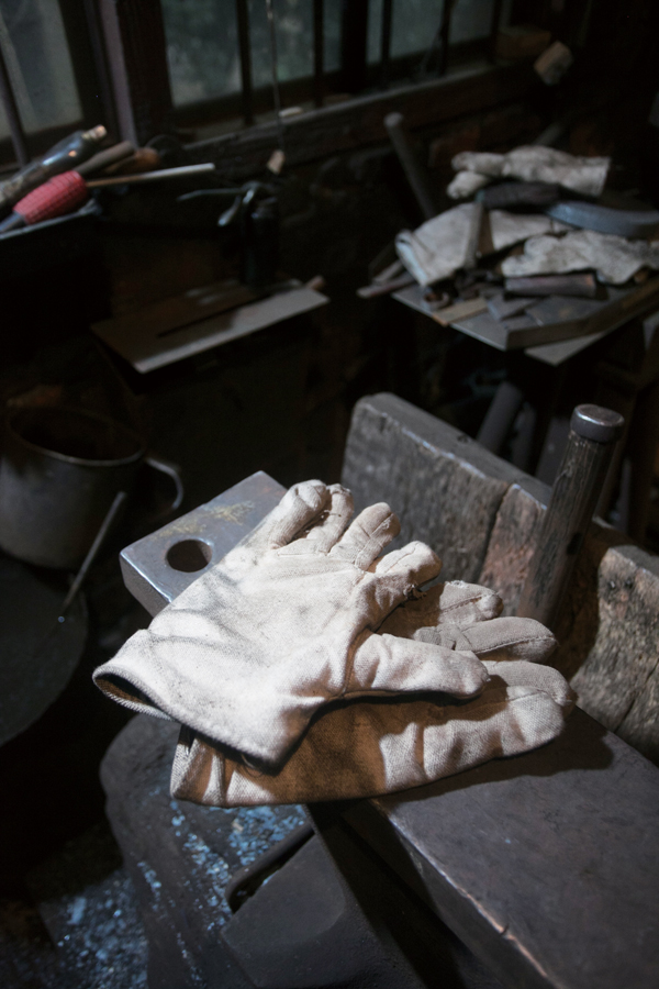 在每次烧火铸铁的时候丁金华都会带上墨镜和厚实的手套以免被火烫伤。