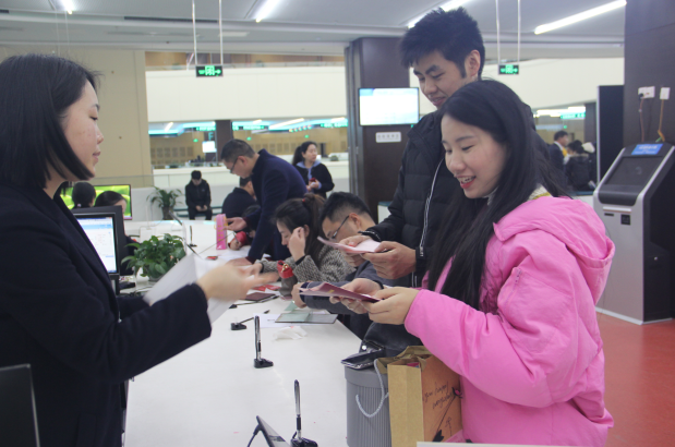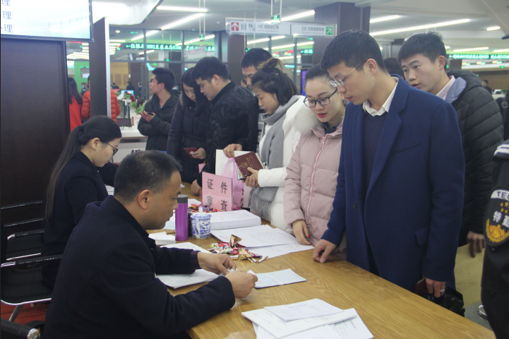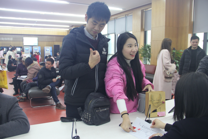 今天办理结婚登记的新人特别多。