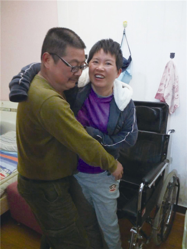 蔡凭跃的父母都是70多岁的人了,开始时怕他们着急,蔡凭跃想方设法瞒着他们,后来他父亲知道了,第一句话就是“讨米都要救活她”。在重症监护室的20多天里,蔡凭跃寸步不离守在医院里,默默地祈祷妻子早日醒来,“就算她变成植物人,我也要守她一辈子。”经过抢救,邓涵与死神插肩而过,终于有了一定的意识。“刚从重症监护室出来时,她根本不认识我和孩子, 我就天天陪着她说话,想尽办法唤起她的记忆。”深情的呼唤使邓涵慢慢有了反应。为照顾好邓涵,蔡凭跃辞去了工作,每天都打起十二分精神,为她擦洗身体,按时给她喂药,每隔两三个小时抱她上一次卫生间,推她出去理疗、散步。到了晚上,等邓涵睡下了,蔡凭跃再忙着清洗衣服、被褥,打扫房间,处理琐事。