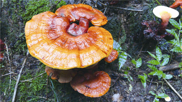 珍贵的野生灵芝群令人啧啧称奇。本报记者 宋秀闺 通讯员 章雅丽 摄