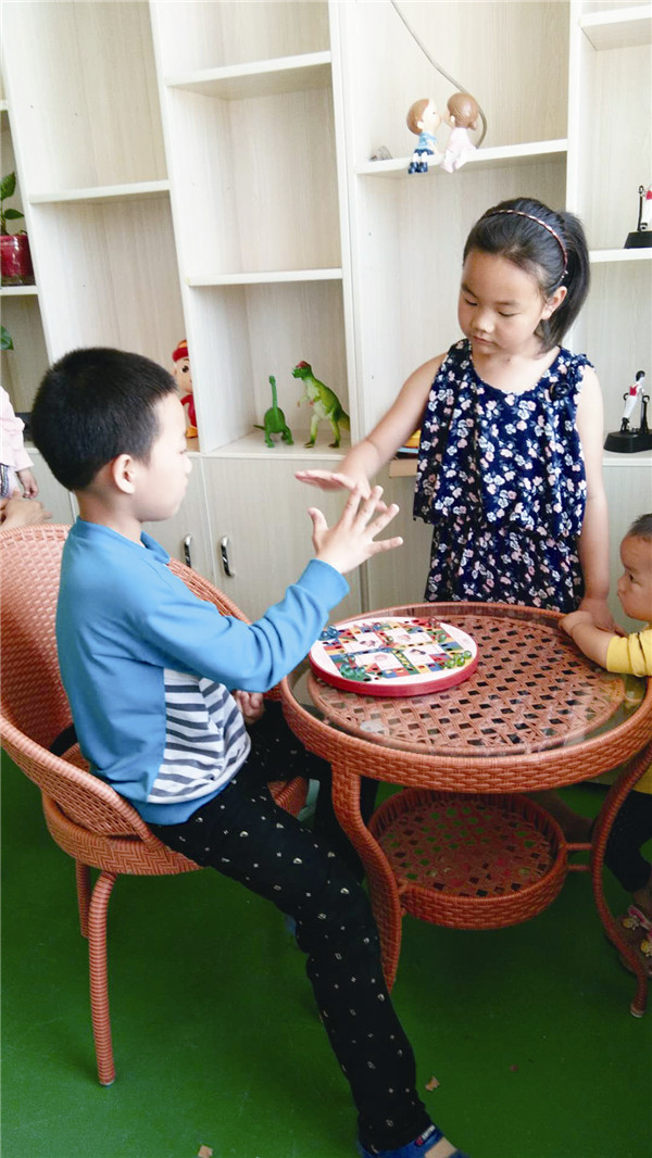 ▲图为孩子们在鹊山村儿童之家下棋。