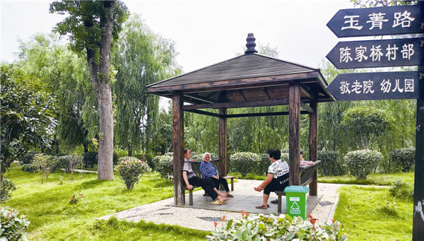 陈家桥村木家湾美丽屋场,村民在凉亭乘凉、聊天。