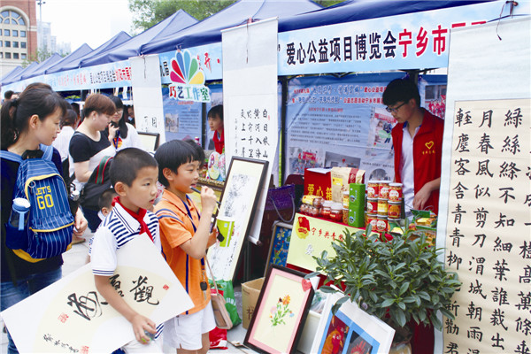 近日,团市委在长沙市青少年宫开展了一场爱心义卖活动,义卖品有联点贫困户家的瓜果蔬菜等土特产,爱心企业赞助的沙田香干、沩山茶叶、陶氏土鸡蛋等宁乡特产,还有基层团委、少先队捐赠的小工艺品。这些义卖品深受长沙市民喜爱,最终收获爱心款3895元。这笔爱心款将全部用于资助宁乡贫困学子。活动当天,还有19名建档立卡贫困学子获得了每人400元的爱心自助及书包文具等爱心大礼包。本报记者 范婷 摄影报道