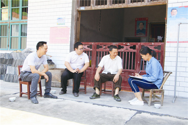 图为草冲村党总支委员走访了解罗小为(右二)的家庭情况。