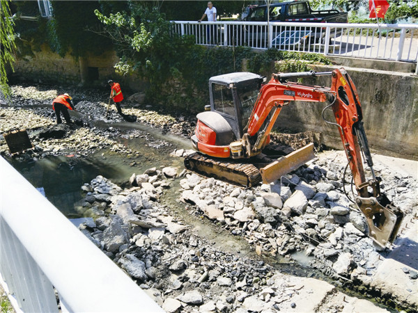 图为化龙溪水坝拆除现场。本报实习记者 李向 摄
