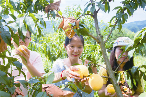 宁乡网—今日宁乡讯(记者 张奇涛)昨日,沩山首届福硒黄桃旅游节在沩水源村开幕,全乡700多亩沩山黄桃正式开园,吸引了众多游客纷至沓来欣赏节目、购买黄桃。