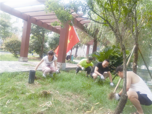 党员业主共同清除小区杂草美化环境。资料图片