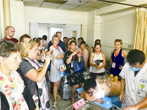 当天,学员分别参观该院针灸推拿病区、针灸康复病区、制剂科。医护人员为他们演示了通督灸(长蛇灸)、刮痧、脐灸、耳穴压豆、拔罐、康复推拿等中医疗法操作。他们纷纷表示,中医治疗体验使他们感到非常舒适,博大精深的中医疗法真是神奇。