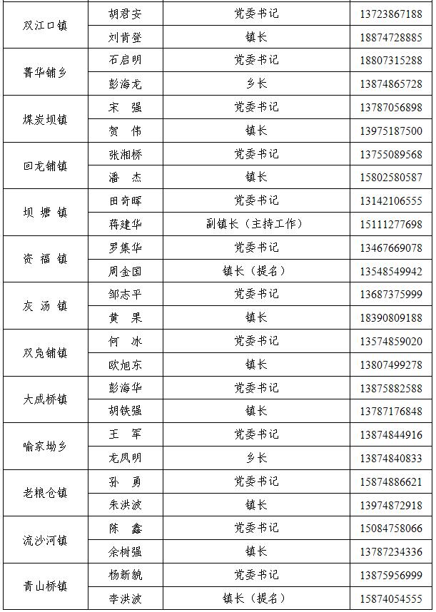 乡镇(街道)党政正职