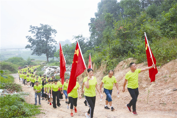 “去年9月18日,我和妻子清晨一起去登了高坝窑的窑头寨后,感觉身心舒爽,觉得登山是个很不错的活动,于是回来后就建了一个微信群,向周围的朋友发起倡议成立旺旺登山队。”贺坚华向记者介绍了旺旺登山队成立一年来的经历。他说,队员从最初的几个人,发展到现在的800余人,靠的是大家的凝聚力和团结协作精神,这种全民健身运动的形式是党和政府都积极倡导的。这一年来,队员们坚持风雨无阻登高坝窑的窑头寨外,还先后登上了望北峰、磊子石和香山冲嵇山;多次开展“保护母亲河,清彻沩江水”活动,义务投工投资修好窑头寨山上的毛公路,不仅方便了队员们登山,更方便了当地村民出行;先后免费发放环保和安全知识宣传资料26万多份。