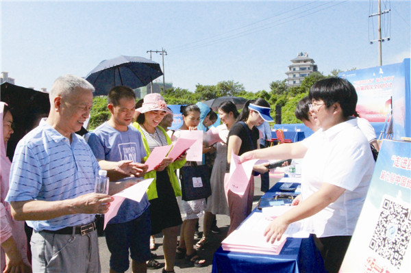 市统计局工作人员在现场发放宣传资料。本报记者 魏枫 摄