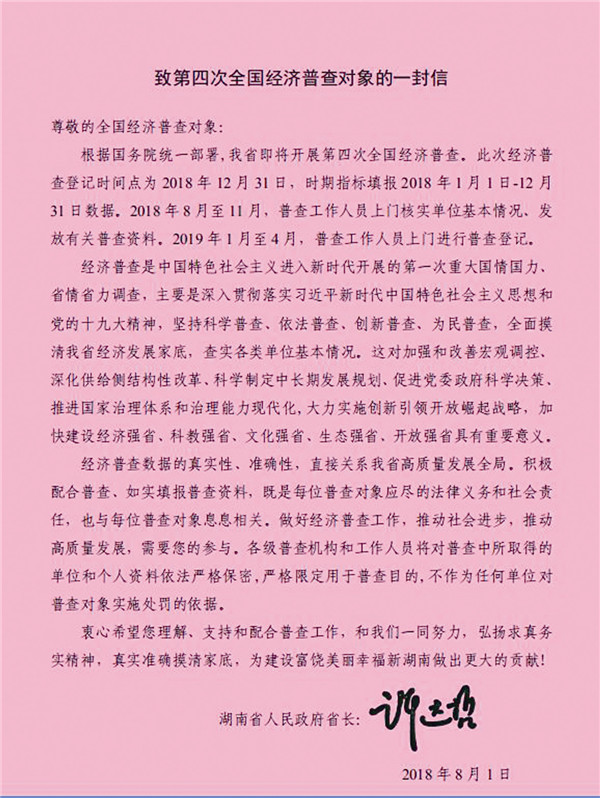 罗新平指出,第四次全国经济普查是党的十九大召开以后组织的首次大型国民经济和社会发展综合性调查,是重大的国情国力调查。对准确反映我省经济发展状况,推动湖南加快转型升级、全面建成小康社会、开启社会主义现代化新征程具有重要意义。宁乡市高度重视第四次经济普查工作,不等不靠,提前谋划,积极推进,各项准备工作高效到位。