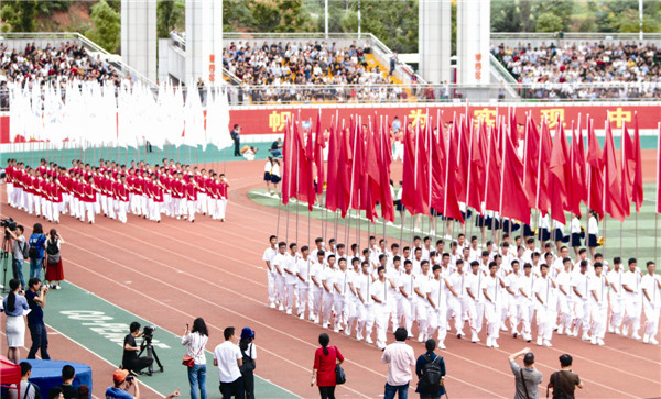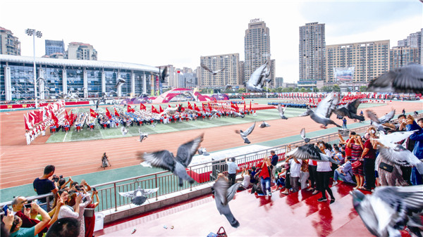 “我校从1100名学生中挑选了60名担任开幕式的举旗手,参加表演的学生均获得了大家的一致赞扬。”金海中学八年级年级主任龚富强告诉记者,他觉得在这次开幕式活动中,最应当值得点赞的是全市市民的文明之风。活动开始前,大家都按规定时间井然有序地排队进场。观看过程中,不喧哗、不乱走动,真正做到了文明观演。最令人感叹的是退场,大家都自觉地把产生的垃圾带走,用自己的行动给学生们上了一堂最鲜活的教育课——谦让守纪。