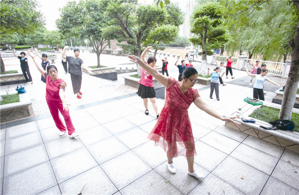 群众在沿江风光带广场快乐起舞。(资料图片)