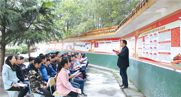 仲秋时分,微风细雨,寒气袭人,记者发现在双江口中学分为18个板块,有100多张图片、3万多文字的百米党史墙前,除了该校师生在专心阅读外,还吸引了不少村民、家长在阅读。据悉,该校定期推出“党史墙前讲党课”活动,在浓厚的氛围中对学生进行系统的党史教育。该校还在师生中开展了党史知识100问竞赛、党史故事演讲赛等主题活动。“大量事实证明,党史教育是最好的思想政治教育,在青少年树立远大理想、凝聚正能量等方面能够起到极大地促进作用。”该校校长颜石坚的观点已得到了广泛验证。