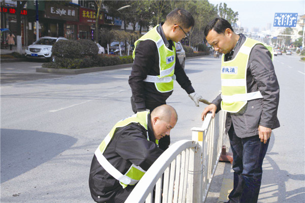 “二环南路新装交通护栏被人移动,给过往车辆造成安全隐患,请速处理。”接到宁乡市12345热线电话,谢建强和交通护栏中队成员在15分钟到达现场,对现场的交通护栏进行复位,对破坏的交通护拦进行维护和更换,1小时后,群众反映的问题圆满处理。