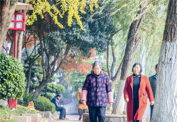 经过半个月左右的阴雨天气,近日,我市终于迎来了久违的冬日暖阳,市民纷纷走出家门沐浴冬日阳光。在沩水河畔,阳光衬托着处处红枫、黄杏,美不胜收。本报记者 张奇涛 摄影报道