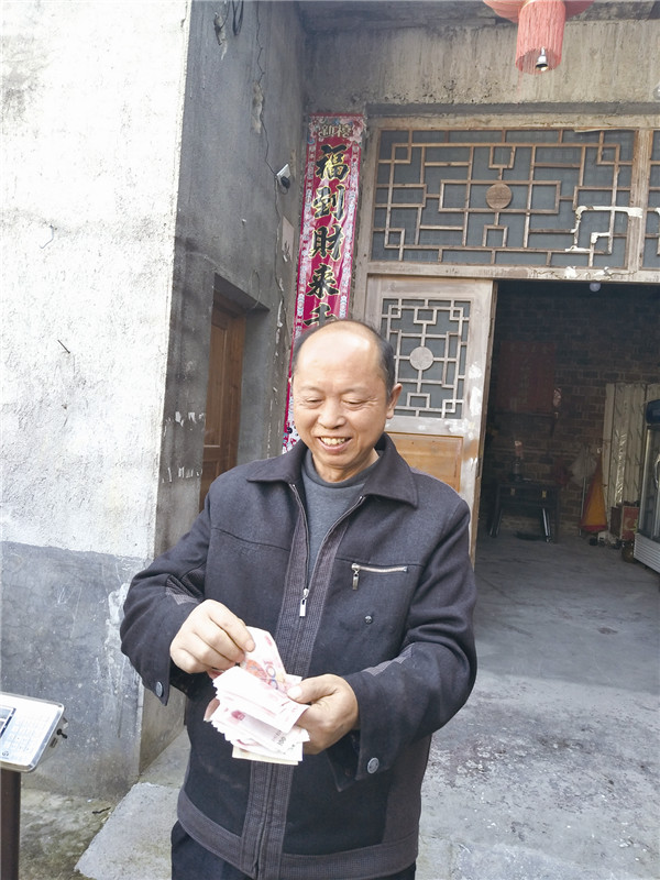 ▲杨得小数着现金,盘算着以后生产更多的农产品致富。