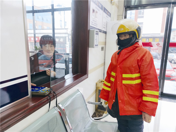 “蒙面”环卫大姐将包送到警务室。本报记者 邬艳 摄