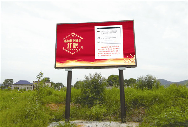 图为杨林桥村的户外电子显示屏,轮番公示着红黑榜。