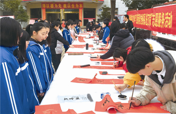当天中午,学校师生积极参与,把最诚挚的祝福融于笔端,写下了最美好的祝愿。随后,青年志愿者和朱石桥村干部一起到村民家中送春联、贴春联,还到花明楼镇敬老院看望老人,并表演了舞蹈《东西》、花鼓戏《刘海砍樵》等节目。