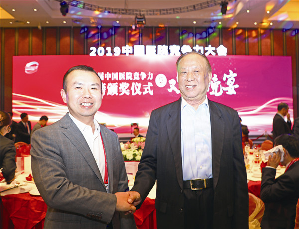 ▲刘亮(中)代表医院领取“百强”奖牌。