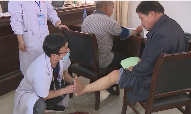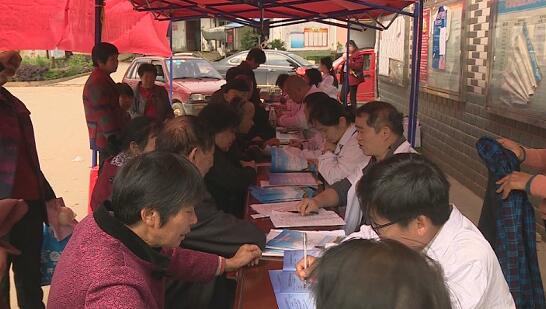 在花明楼镇杨林桥村村部前坪广场,很多老年人正在有序的接受健康体检。来自谢家组73岁的齐志和老人身患高血压和冠心病,在完成各项身体检查之后,负责联系他的家庭医生正耐心的为他讲解日常饮食起居中的注意事项。
