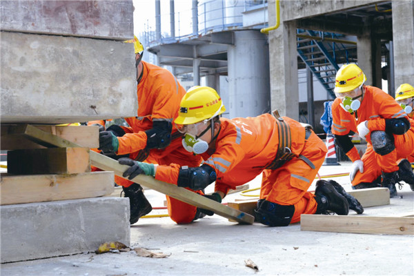 阳光救援队员正在参加全国首届社会应急力量技能竞赛。资料图片