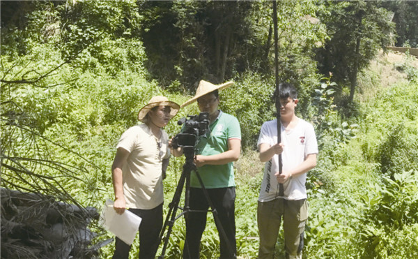 张勇(左一)在《话说·方言》拍摄现场。