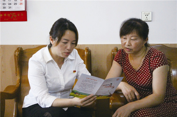 煤炭坝社区办公室主任蔡霞(左)正在入户讲解相关环境整治措施。