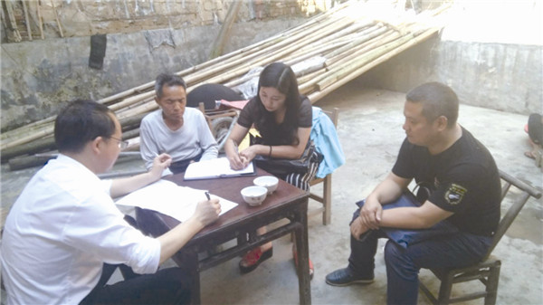 帮扶责任人罗军民(左一)和联村干部一起,在张若军(左二)家指导工作。图片由受访者提供