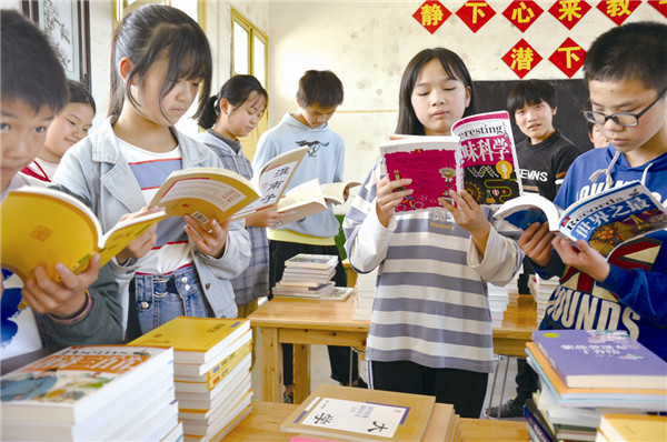 图为麻山中学学生在阅读新送来的图书。本报记者 段华良 摄