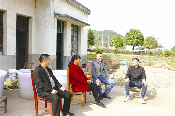 谢某某(左二)正在畅聊现在的好日子。