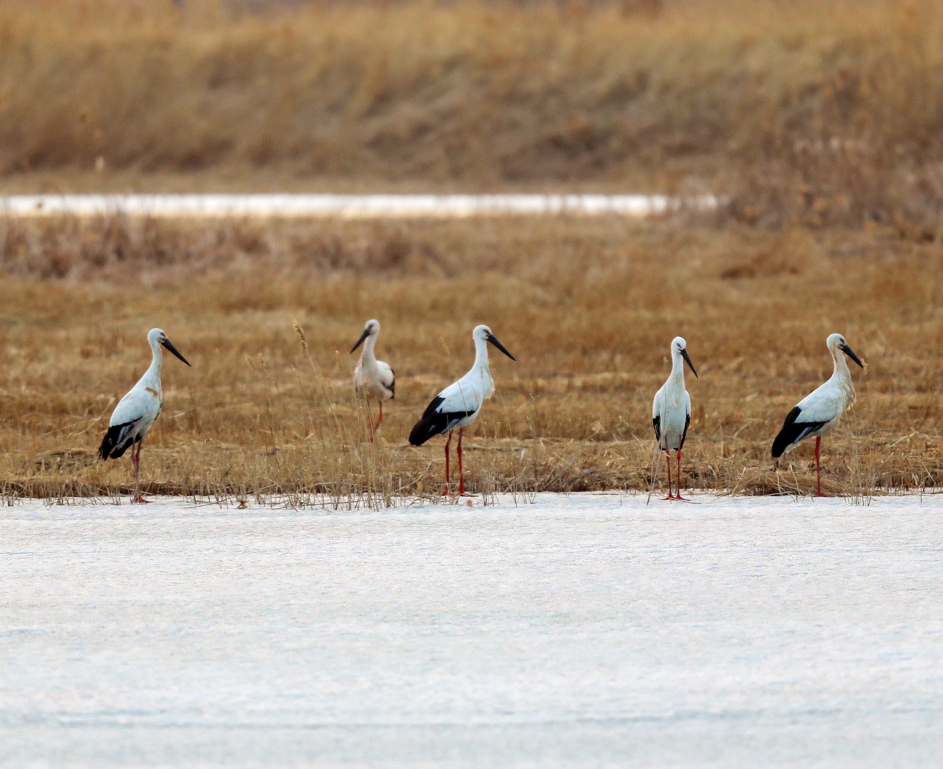 2020年3月22日,东方白鹳在查干湖畔休憩。查干湖通过巡护排查、伤鸟救治、智慧监测等举措,为候鸟提供优质的栖息环境和安全的迁飞通道。截至2025年11月3日,查干湖的国家一级重点保护鸟类由过去的8种增加至17种,国家二级重点保护鸟类由过去的35种增加至52种,东方白鹳、白皮鹭、青头潜鸭等珍稀濒危鸟类也会选择在查干湖筑巢繁殖。