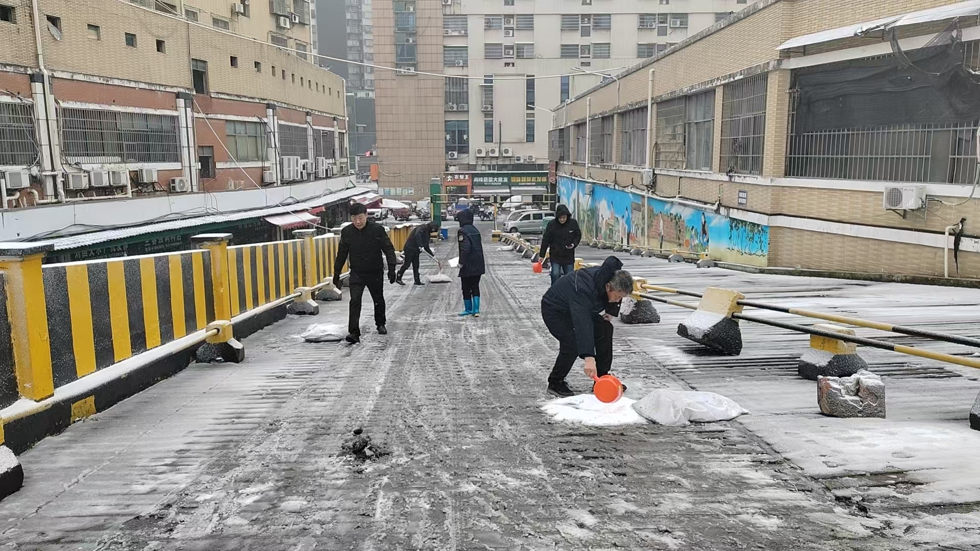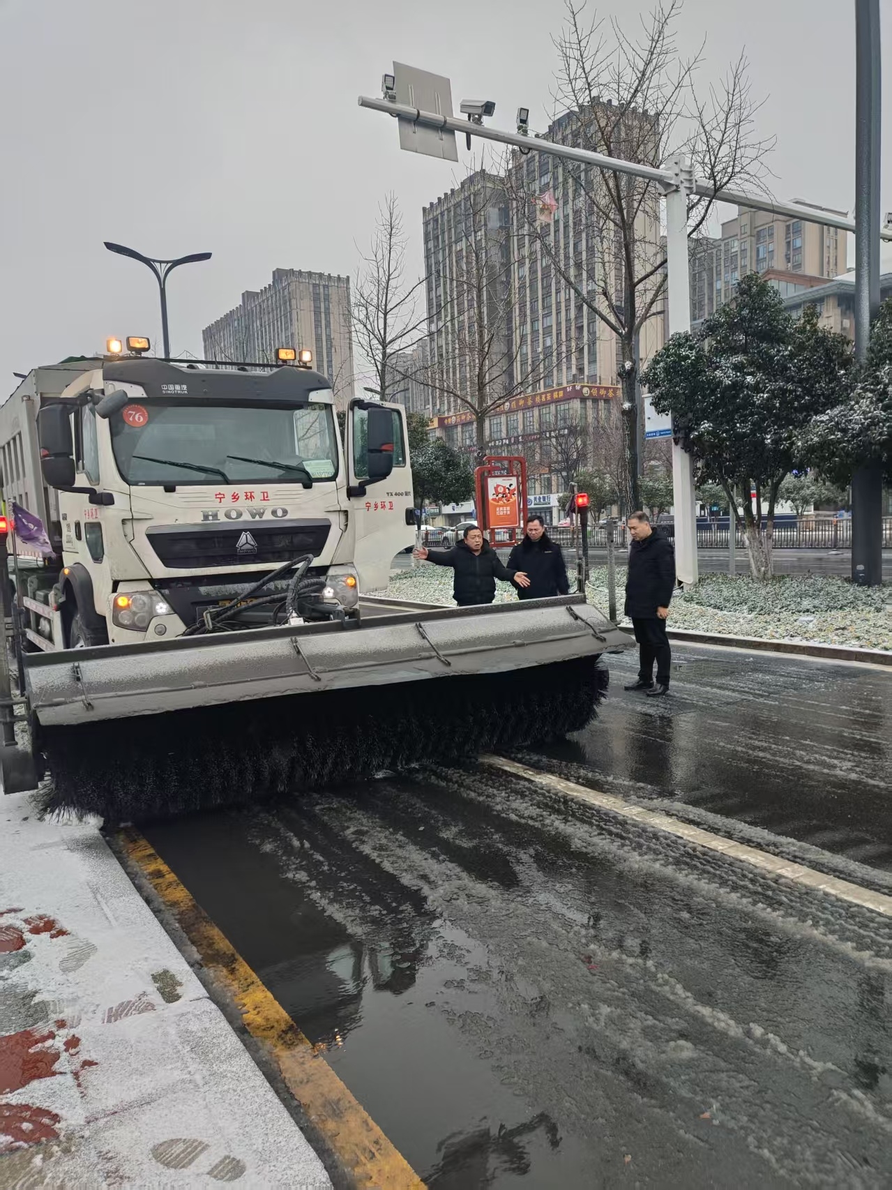 作为清雪除冰的“主力军”,环卫中心凌晨即组织力量,采取“人机结合”的方式展开作业。除雪车、撒盐机等机械设备轰鸣上阵,对城区桥梁、主干道进行循环作业;环卫工人们挥舞铁锹、推雪板,在人行道、公交站台等重点区域人工清雪除冰。他们不畏严寒,争分夺秒,全力确保早高峰到来前道路畅通,为市民开辟出一条条“安全通道”。