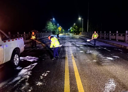 花明楼镇严格执行领导带班和24小时值班制度,确保政令畅通、反应迅速。夜间值班干部不畏严寒,持续开展全镇安全巡查,重点对辖区高速公路入口、大型桥梁、急弯陡坡等易结冰地段进行撒盐除冰作业,及时设置警示标识,提醒过往车辆减速慢行。截至目前,已累计出动巡查人员300余人次,撒布融雪剂10余吨,处置道路结冰隐患点20余处,有效保障了主要道路的安全畅通。