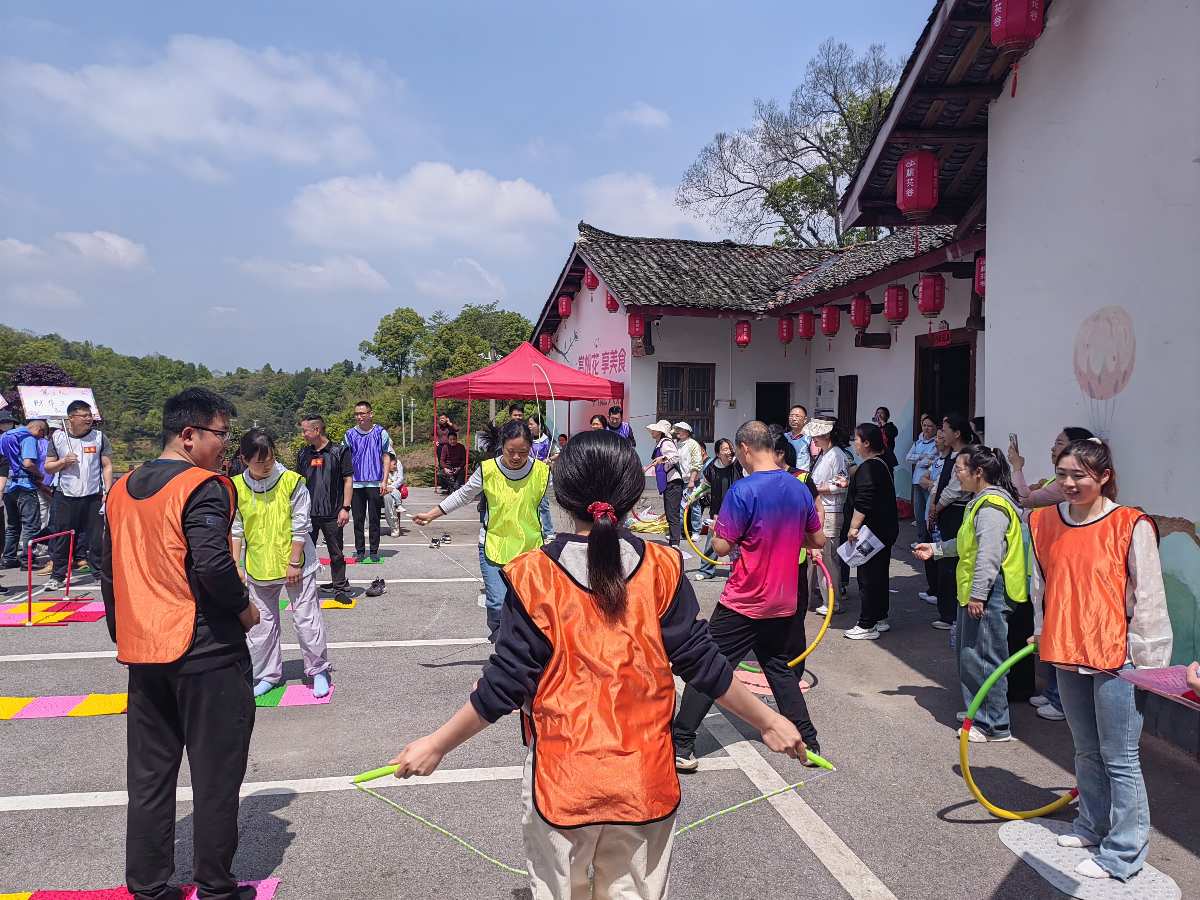 最令人捧腹的要数 “面粉接力赛” 。队员们用嘴叼着扑克牌传递面粉,稍有不慎便被喷得满脸雪白,奇特的“白面造型”让全场笑声此起彼伏,欢乐背后是对专注力与协作力的极致考验。随后的 “脑力风云”、“疯狂指压板”、“蒙眼取水”等活动环节,将财务人员的职业特点与趣味运动巧妙融合,既考验团队协作,又不乏欢声笑语。下午的重头戏是 “桃花谷欢乐跑” ,八支队伍齐聚桃花谷,沿着春光烂漫的山谷步道展开全程约3公里的团队欢乐跑。