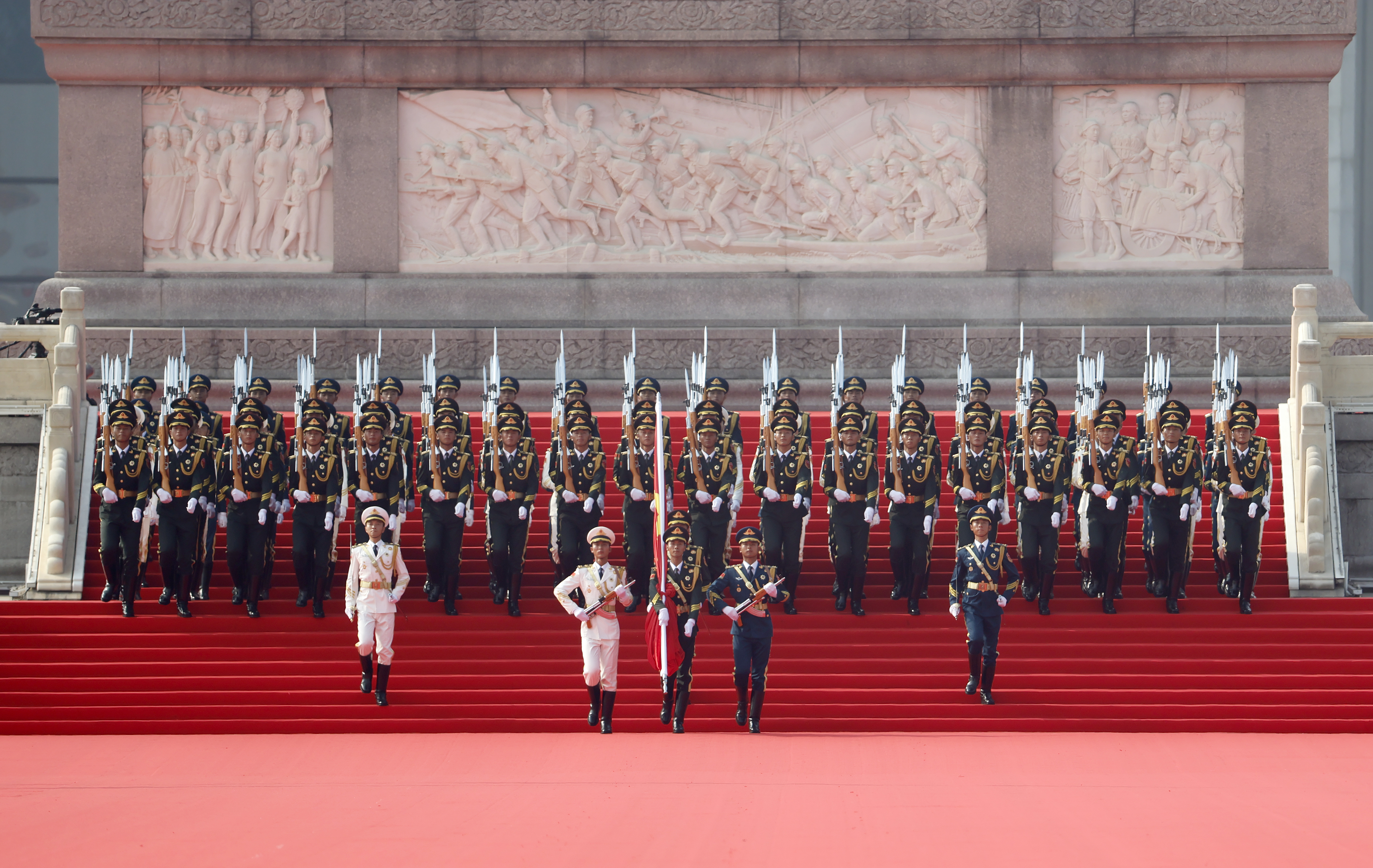 站在天安门城楼上,习近平总书记向世界郑重宣示:“中华民族伟大复兴势不可挡!人类和平与发展的崇高事业必将胜利!”