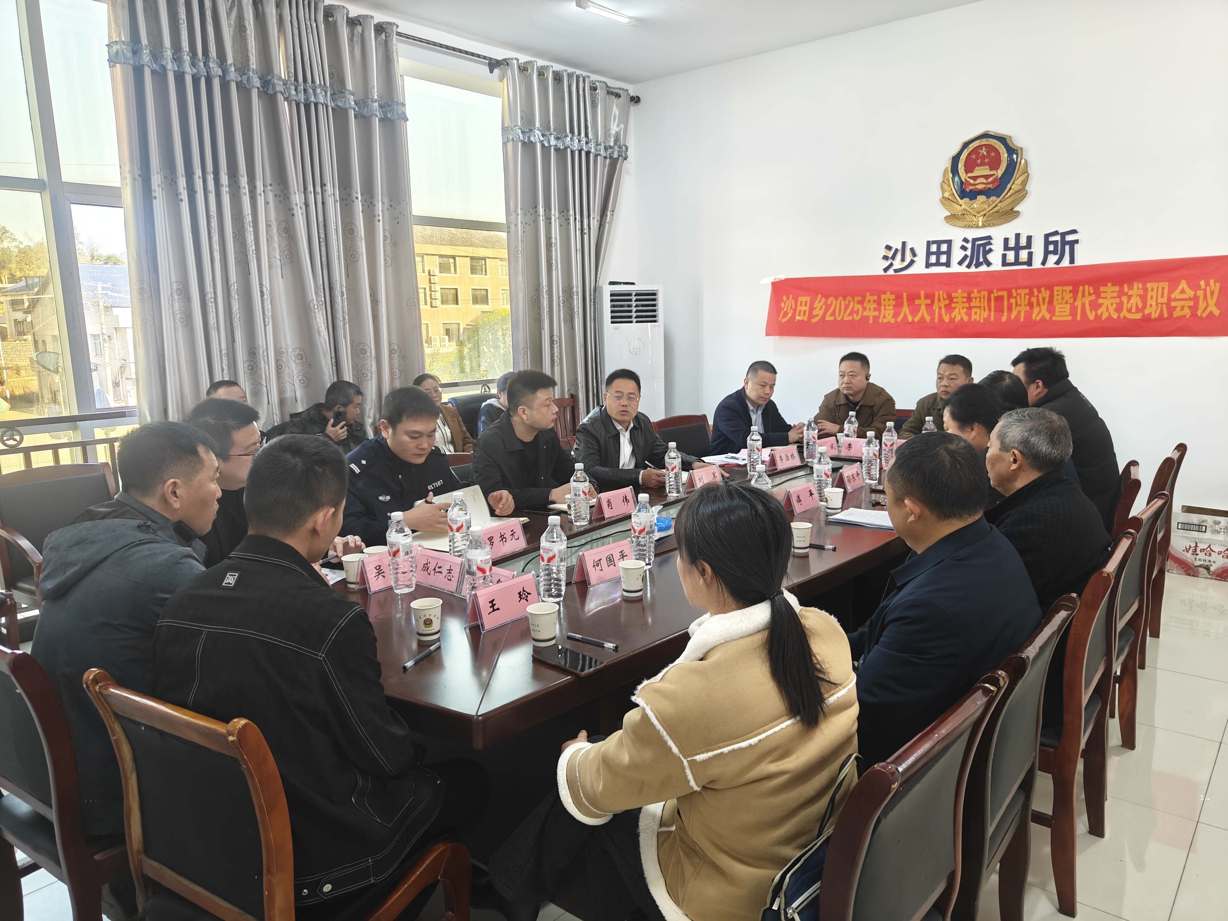 2025年11月26日上午,沙田乡人大在乡派出所召开人大代表部门评议暨长沙市人大代表向选民述职会议,乡人大主席团成员、乡派出所及敬老院负责人、选民代表等参会,以评议促提升、以述职强担当,推动基层监督落地见效。