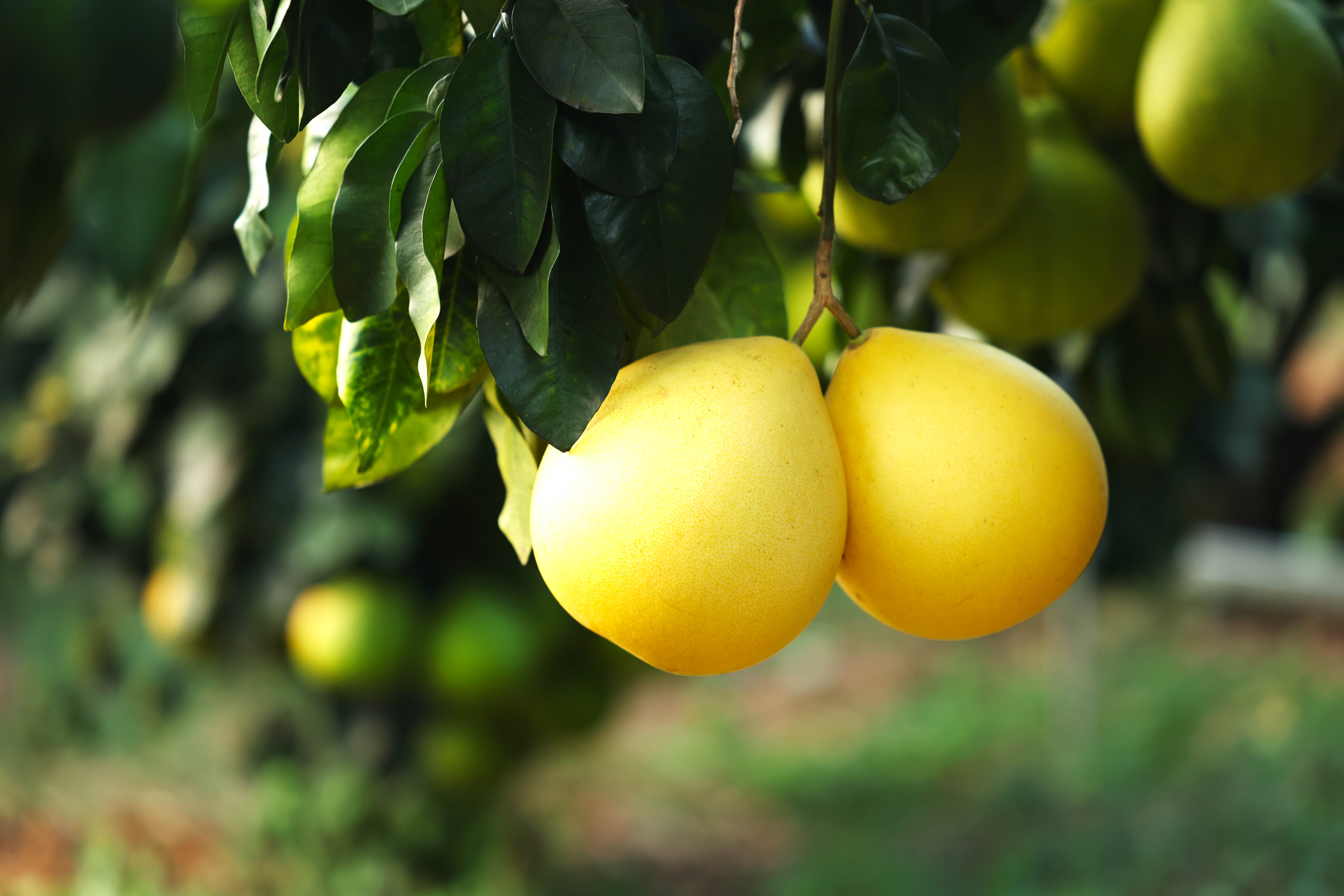 2025年11月7日在梅州南福金柚种植基地拍摄的金柚及相关产品。