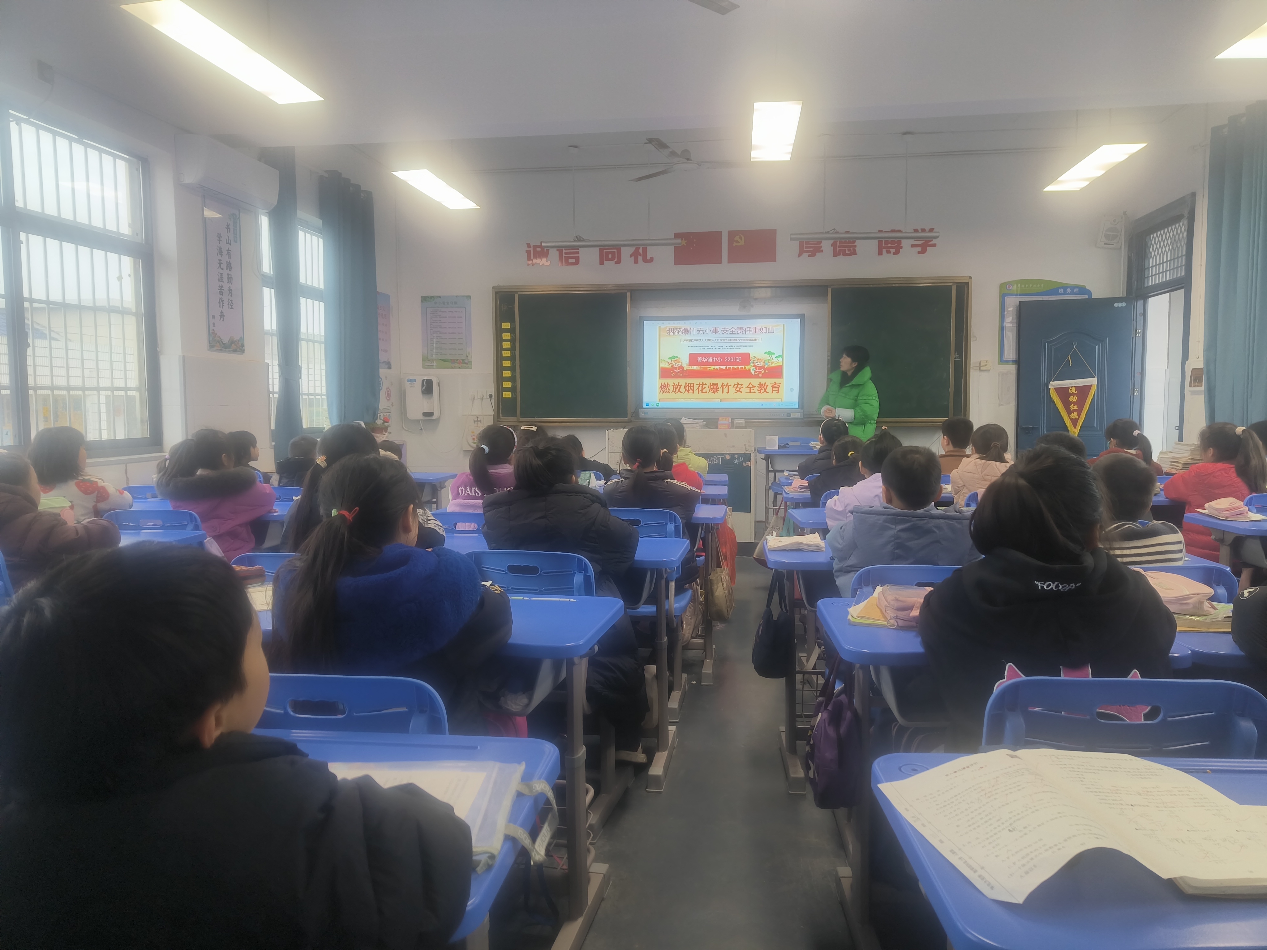 为形成教育合力,学校向每位学生家长发放《禁放烟花爆竹 守护美丽宁乡》倡议信,详细解读全年禁放区域(含学校所在的菁华铺村、桃林桥村)、限放时段及安全要求,引导家长以身作则,做好孩子的安全教育与监督。全校23个班级统一召开主题班会,班主任借助多媒体课件,生动讲解燃放烟花爆竹带来的安全风险与环境污染,学生们积极讨论,承诺争当“禁放宣传小卫士”。